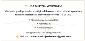 Via de mail, info@tandartspraktijkederveen.nl zijn we altijd bereikbaar en zullen ons best doen u zo spoedig mogelijk te helpen.
